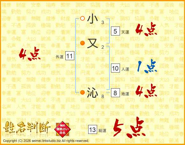 小又沁さんの総運は13画の5点!