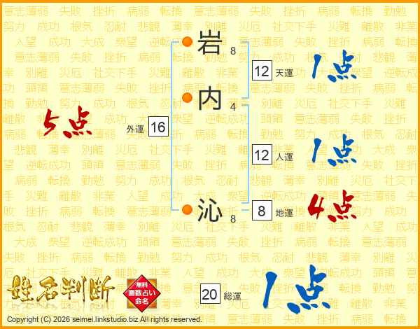岩内沁さんの外運は16画の5点!