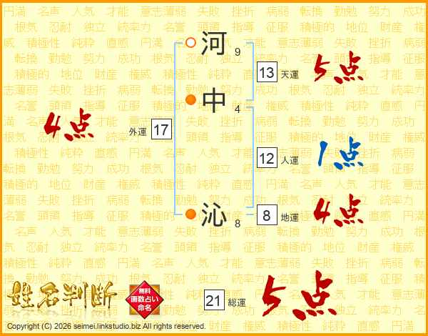 河中沁さんの天運は13画の5点!