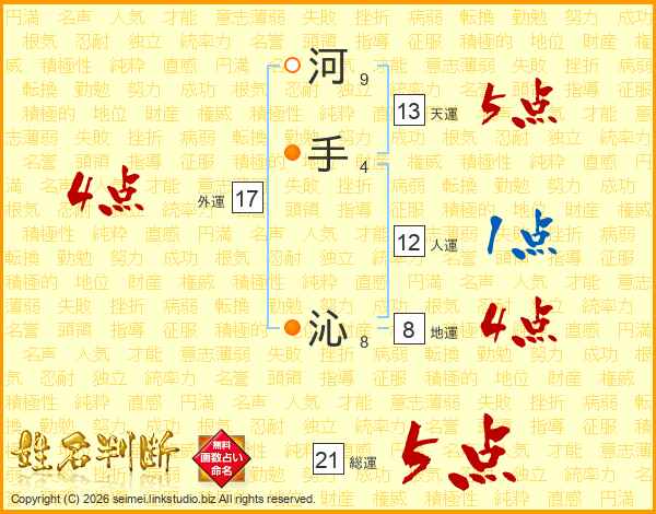 河手沁さんの総運は21画の5点!