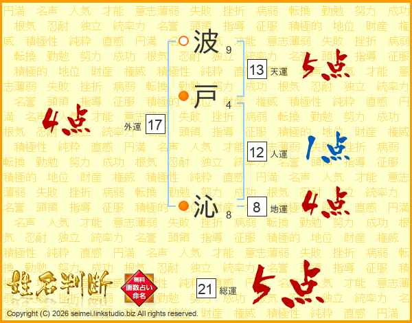 波戸沁さんの総運は21画の5点!