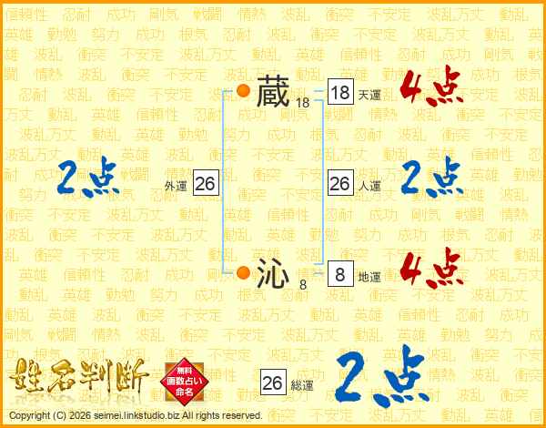 蔵沁さんの人運は26画の2点!