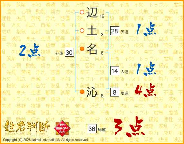 辺土名沁さんの総運は36画の3点!