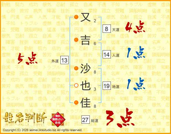 又吉沙也佳さんの総運は27画の3点!