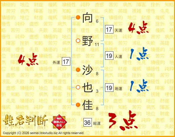 向野沙也佳さんの外運は17画の4点!
