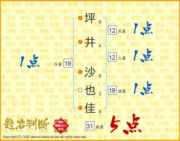 坪(8画)井(4画) 沙(8画)也(3画)佳(8画)