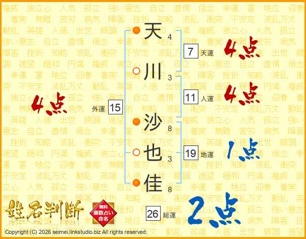 天川沙也佳さんの総運は26画の2点!