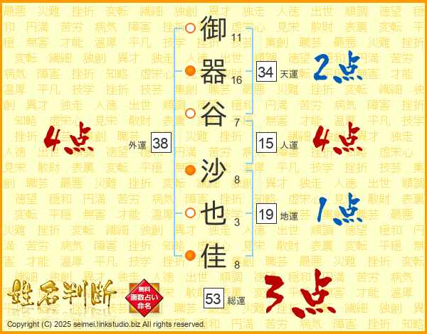 御器谷沙也佳さんの総運は53画の3点!