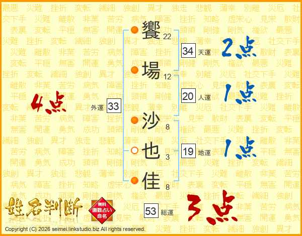 饗場沙也佳さんの外運は33画の4点!