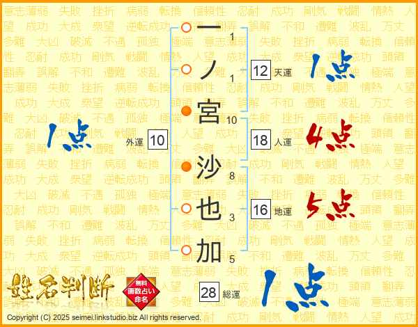 一ノ宮沙也加さんの総運は28画の1点!