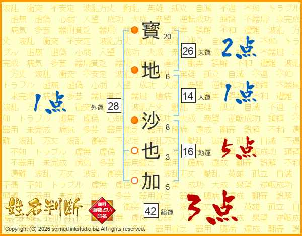 寳地沙也加さんの天運は26画の2点!