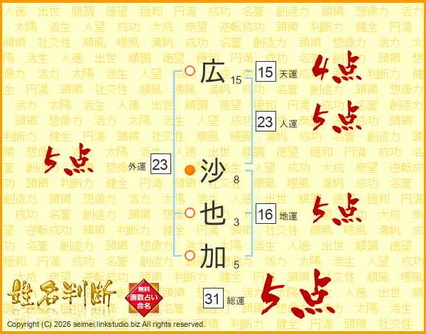 広沙也加さんの外運は23画の5点!