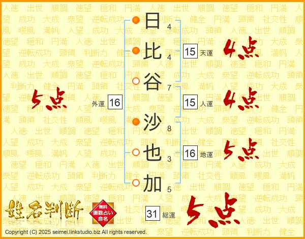 日比谷沙也加さんの総運は31画の5点!
