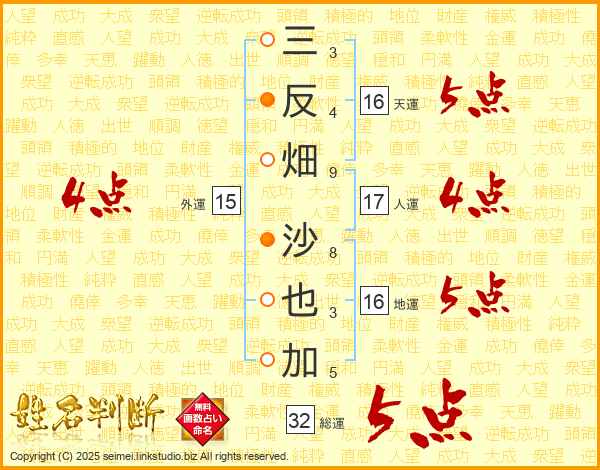 三反畑沙也加さんの総運は32画の5点!