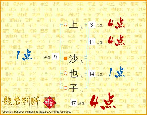 上沙也子さんの総運は17画の4点!