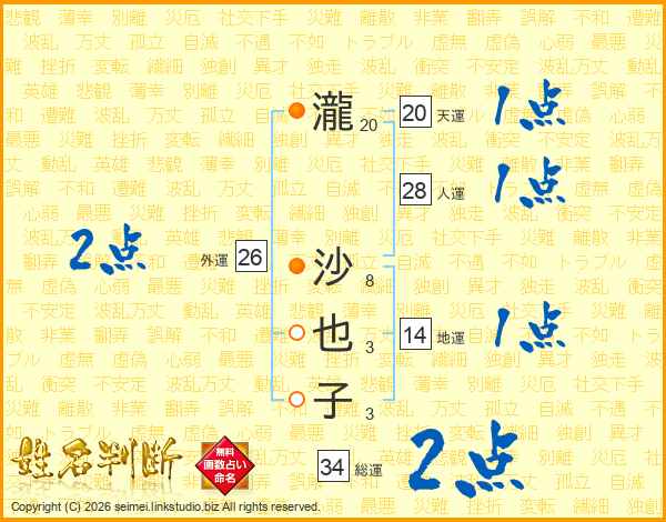 瀧沙也子さんの外運は26画の2点!