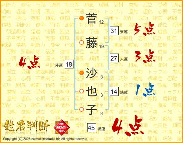 菅藤沙也子さんの総運は45画の4点!