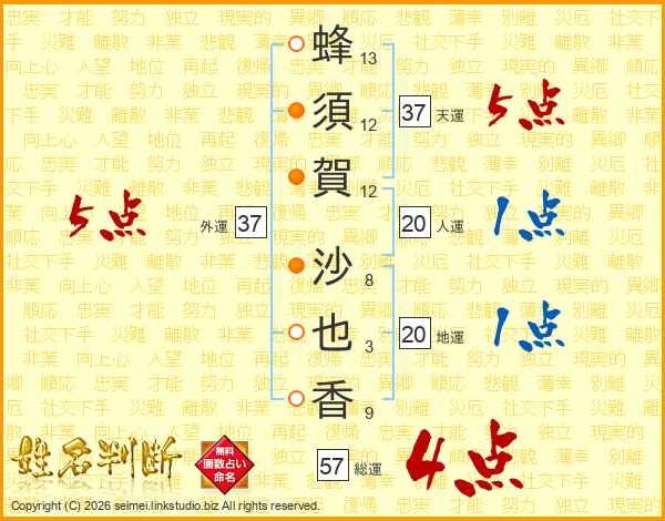 蜂須賀沙也香さんの天運は37画の5点!