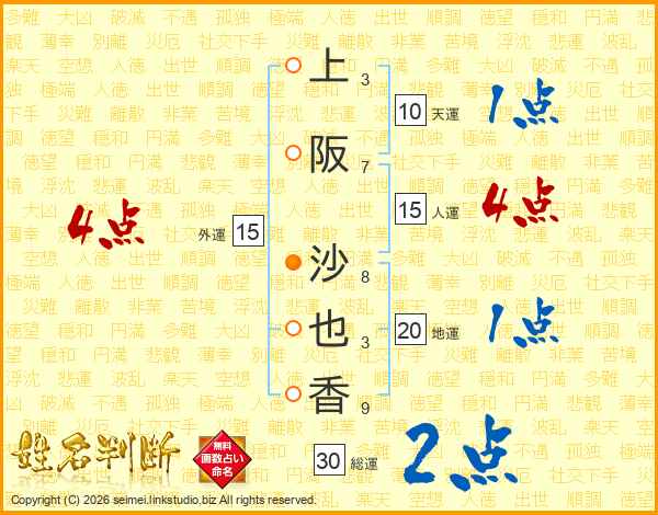 上阪沙也香さんの総運は30画の2点!