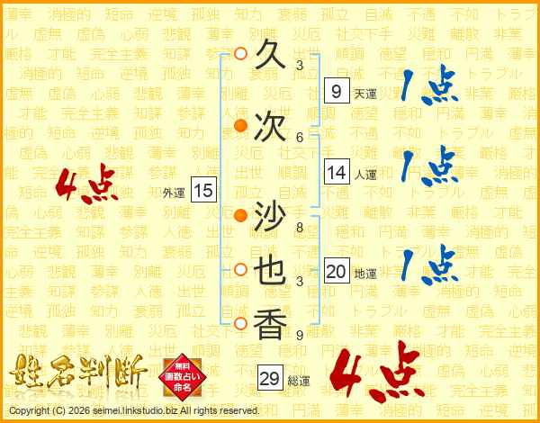 久次沙也香さんの総運は29画の4点!