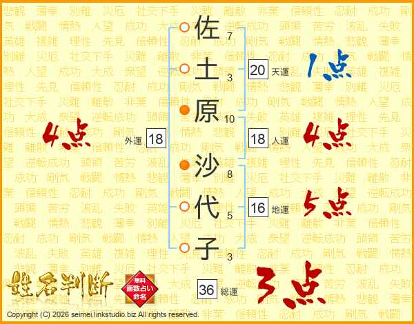 佐土原沙代子さんの外運は18画の4点!