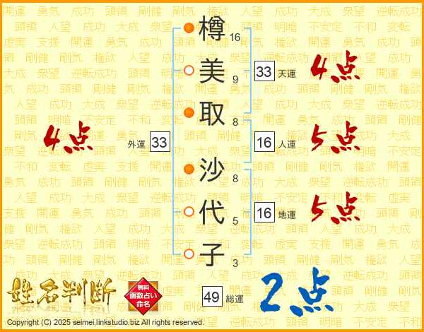 樽美取沙代子さんの総運は49画の2点!