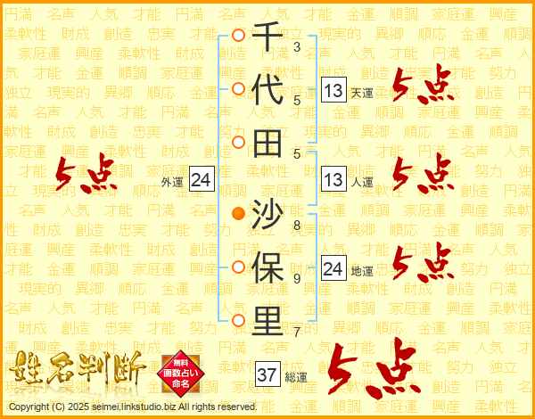 千代田沙保里さんの総運は37画の5点!
