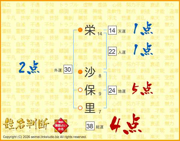 栄沙保里さんの総運は38画の4点!