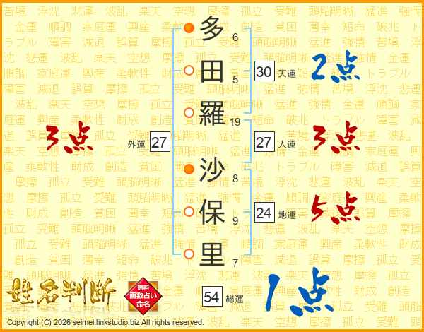 多田羅沙保里さんの総運は54画の1点!