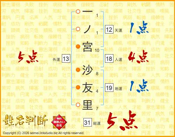 一ノ宮沙友里さんの総運は31画の5点!