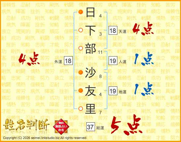 日下部沙友里さんの総運は37画の5点!