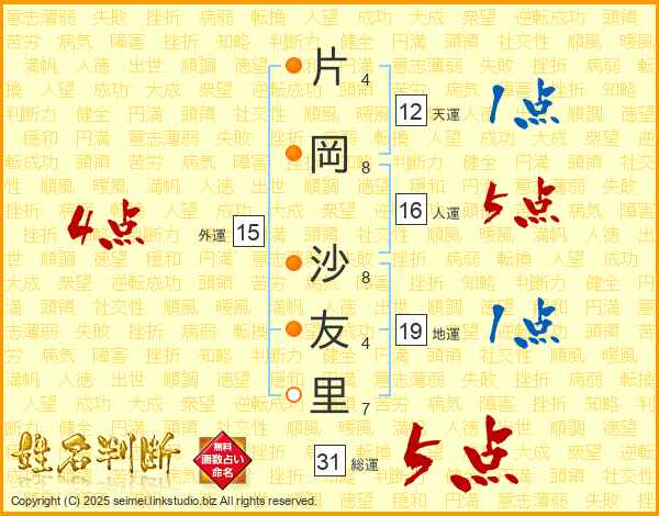 片岡沙友里さんの総運は31画の5点!
