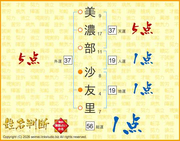 美濃部沙友里さんの天運は37画の5点!