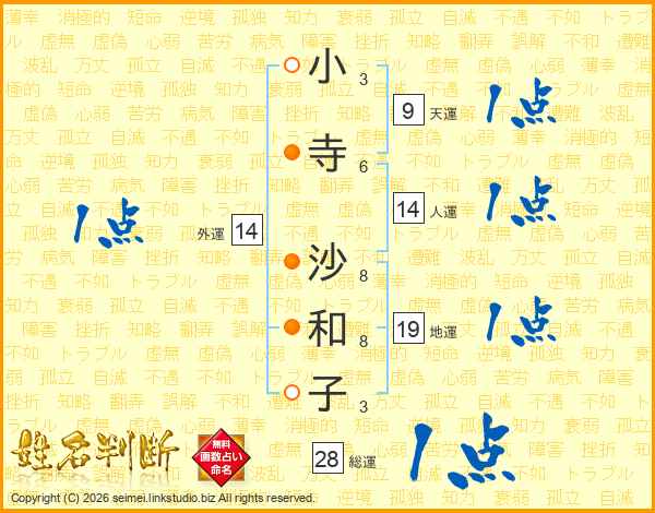 小寺沙和子さんの総運は28画の1点!