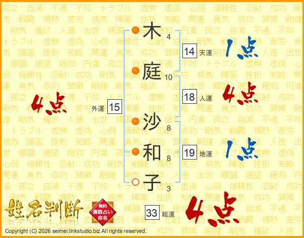 木庭沙和子さんの総運は33画の4点!