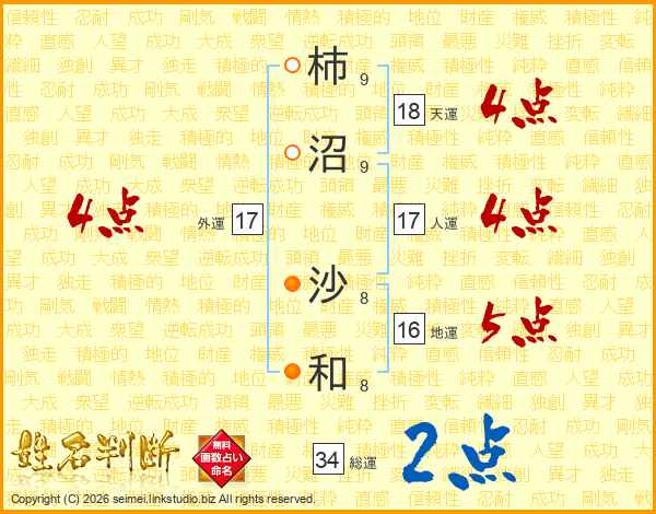 柿(9画)沼(9画) 沙(8画)和(8画)
