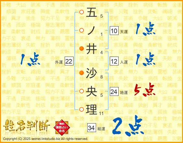 五ノ井沙央理さんの総運は34画の2点!