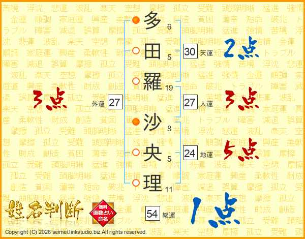 多田羅沙央理さんの人運は27画の3点!