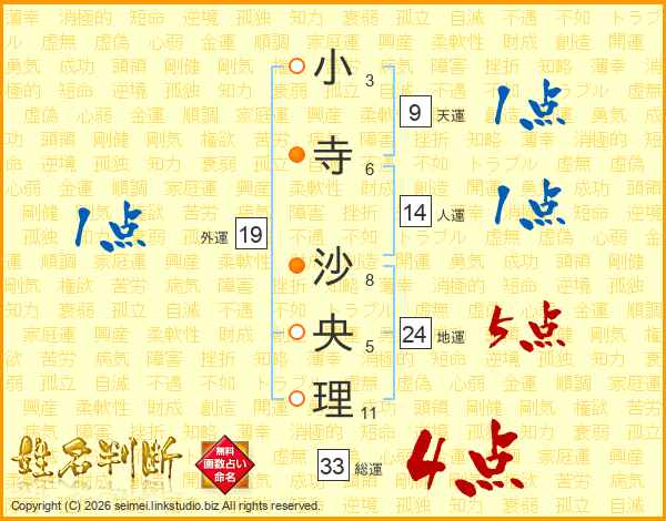 小(3画)寺(6画) 沙(8画)央(5画)理(11画)