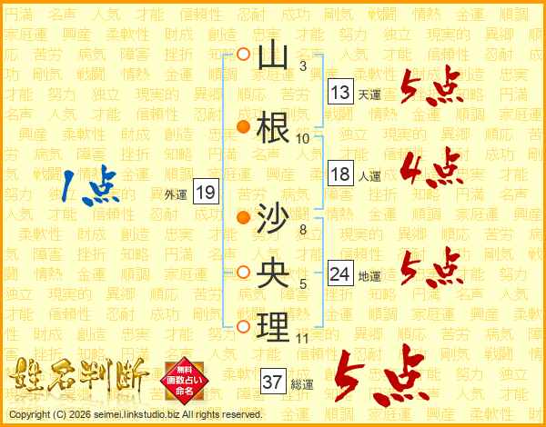 山根沙央理さんの天運は13画の5点!