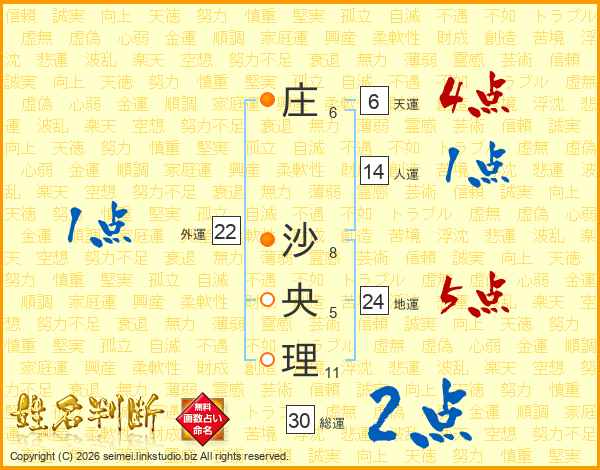 庄沙央理さんの総運は30画の2点!