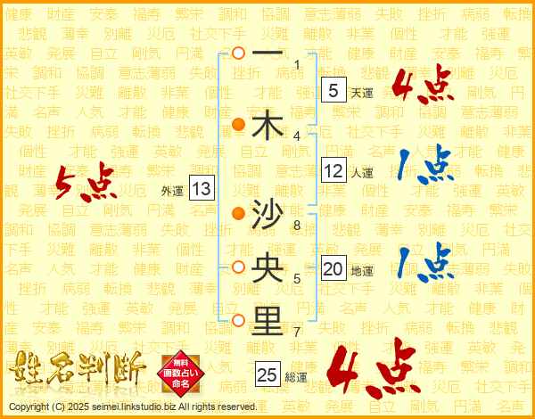 一木沙央里さんの総運は25画の4点!