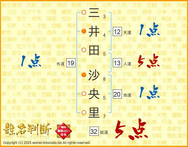 三井田沙央里さんの総運は32画の5点!
