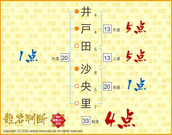 井戸田沙央里さんの総運は33画の4点!