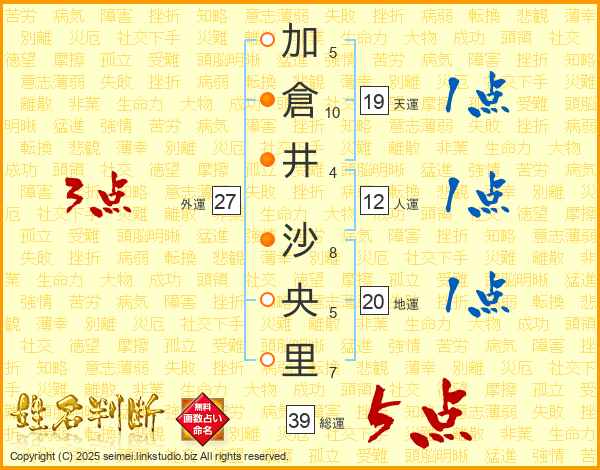 加倉井沙央里さんの総運は39画の5点!