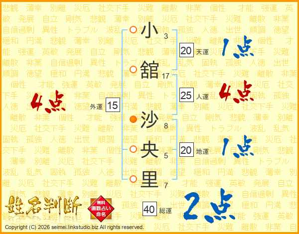 小舘沙央里さんの人運は25画の4点!