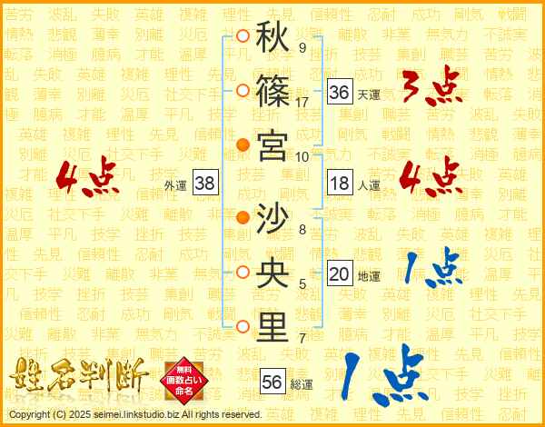 秋篠宮沙央里さんの外運は38画の4点!