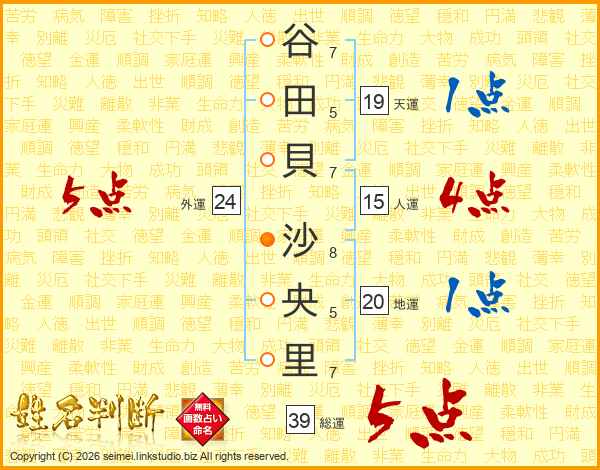 谷田貝沙央里さんの総運は39画の5点!