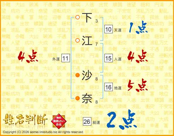 下江沙奈さんの総運は26画の2点!
