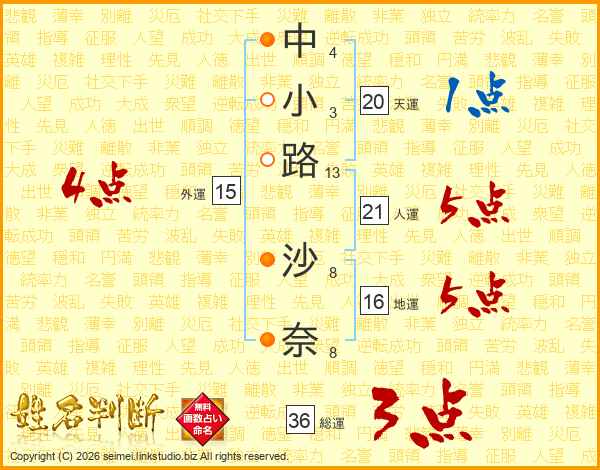 中小路沙奈さんの総運は36画の3点!